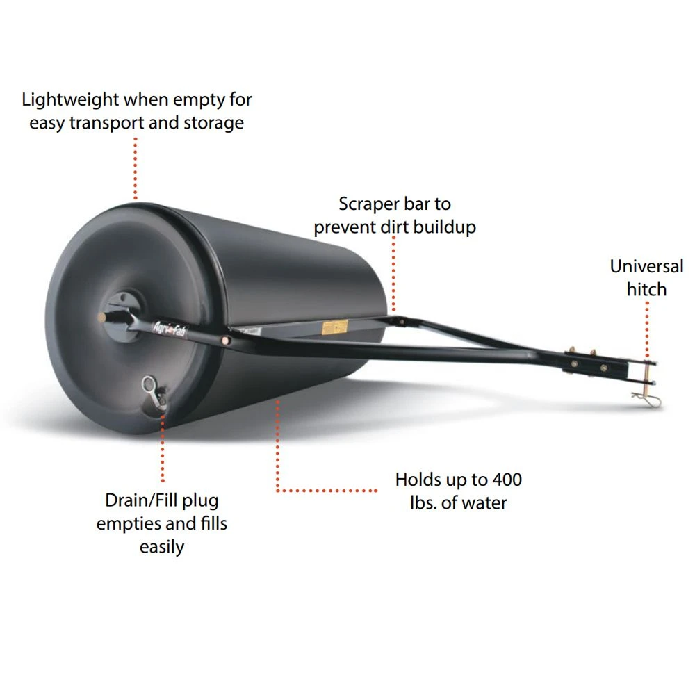 Supplied with a hitch pin, the Agri-Fab 45-0268 garden roller is suitable for towing behind all makes of lawn tractor.