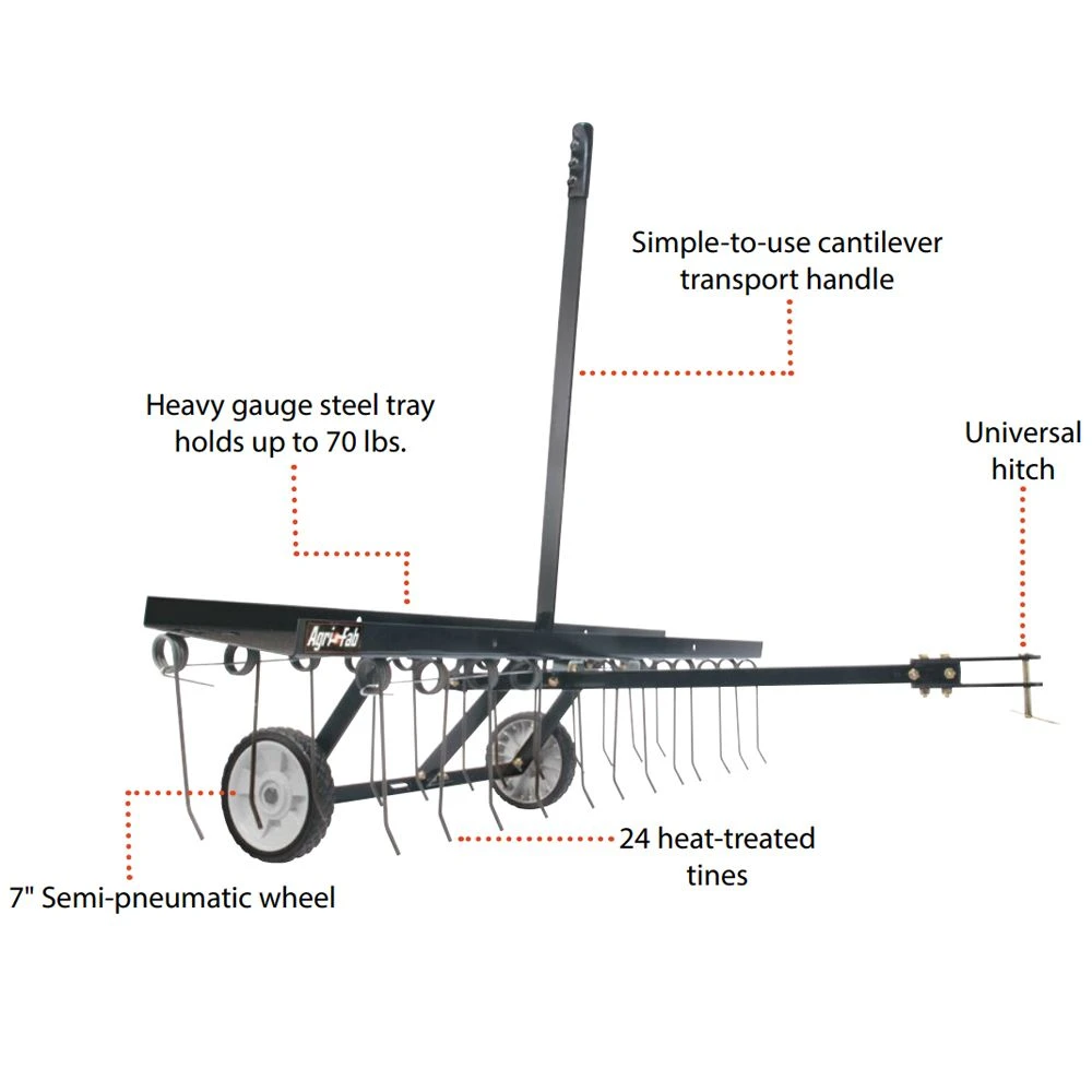 The 24 tines on this model are heat-treated for strength and durability. A universal link-pin is included making it suitable for towing behind all makes of lawn and garden tractor.