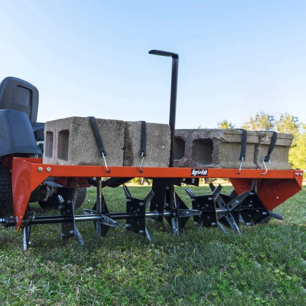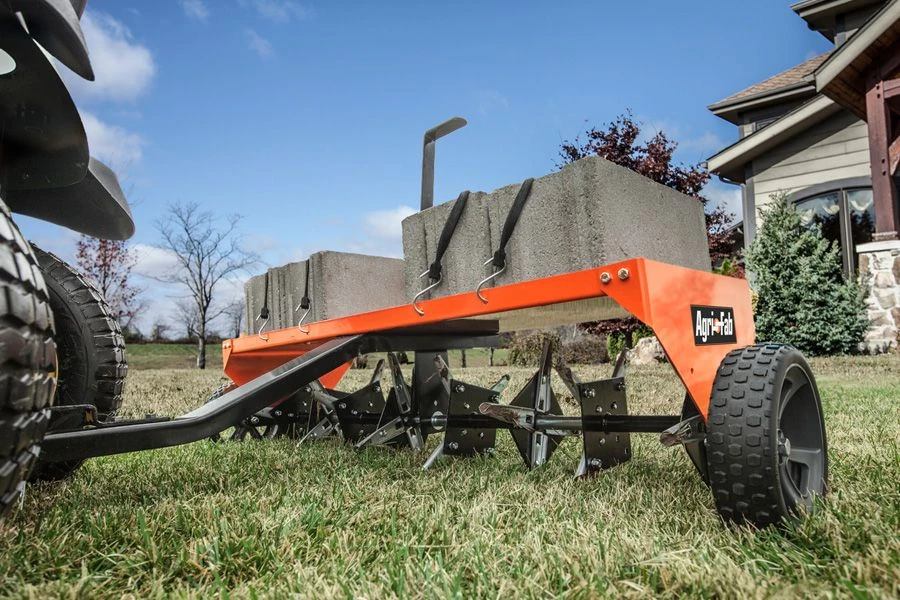 Supplied with a universal hitch pin, the Agri-Fab plug aerator is suitable for towing behind all makes of ride-on lawn mower.