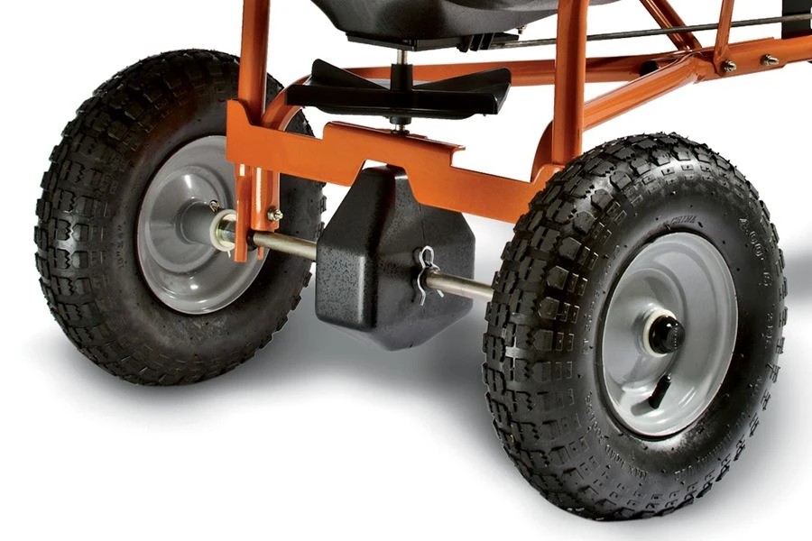Featuring a fully enclosed commercial-grade gear box, the Agri-Fab 45-0463 towed SmartSPREADER is smooth rolling and easy to maintain. The large pneumatic tyres provide increased manoeuvrability. The poly hopper and spreader plate resist corrosion.