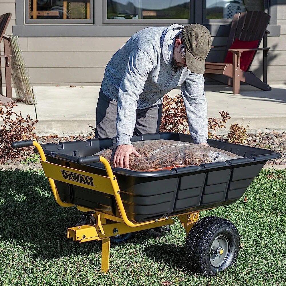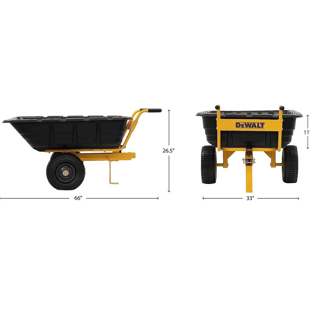The DeWalt DXTB0573 cart is an easy to use, excellent alternative to an ordinary wheelbarrow and, if it becomes to heavy to push, simply convert it from a wheelbarrow to a tow-behind cart in seconds and let your garden tractor take all the effort of pulling for you.