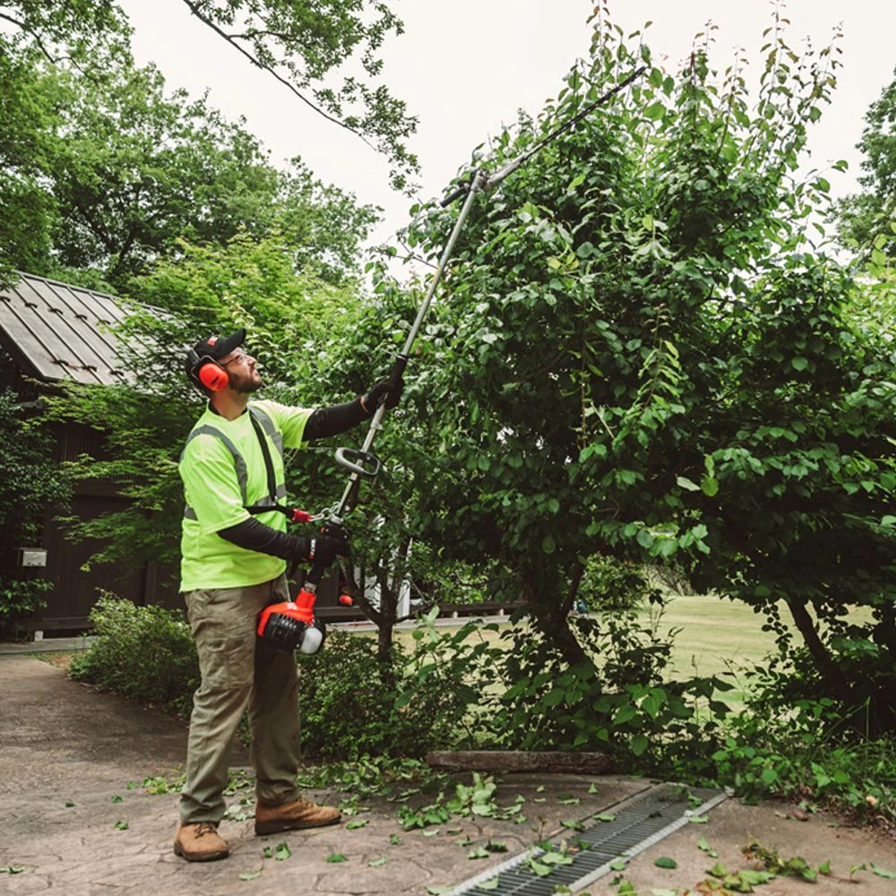 The MTA-AHS-HD attachment is a long-reach articulating hedge trimmer compatible with the PAS-2620ES X-Series petrol power head.