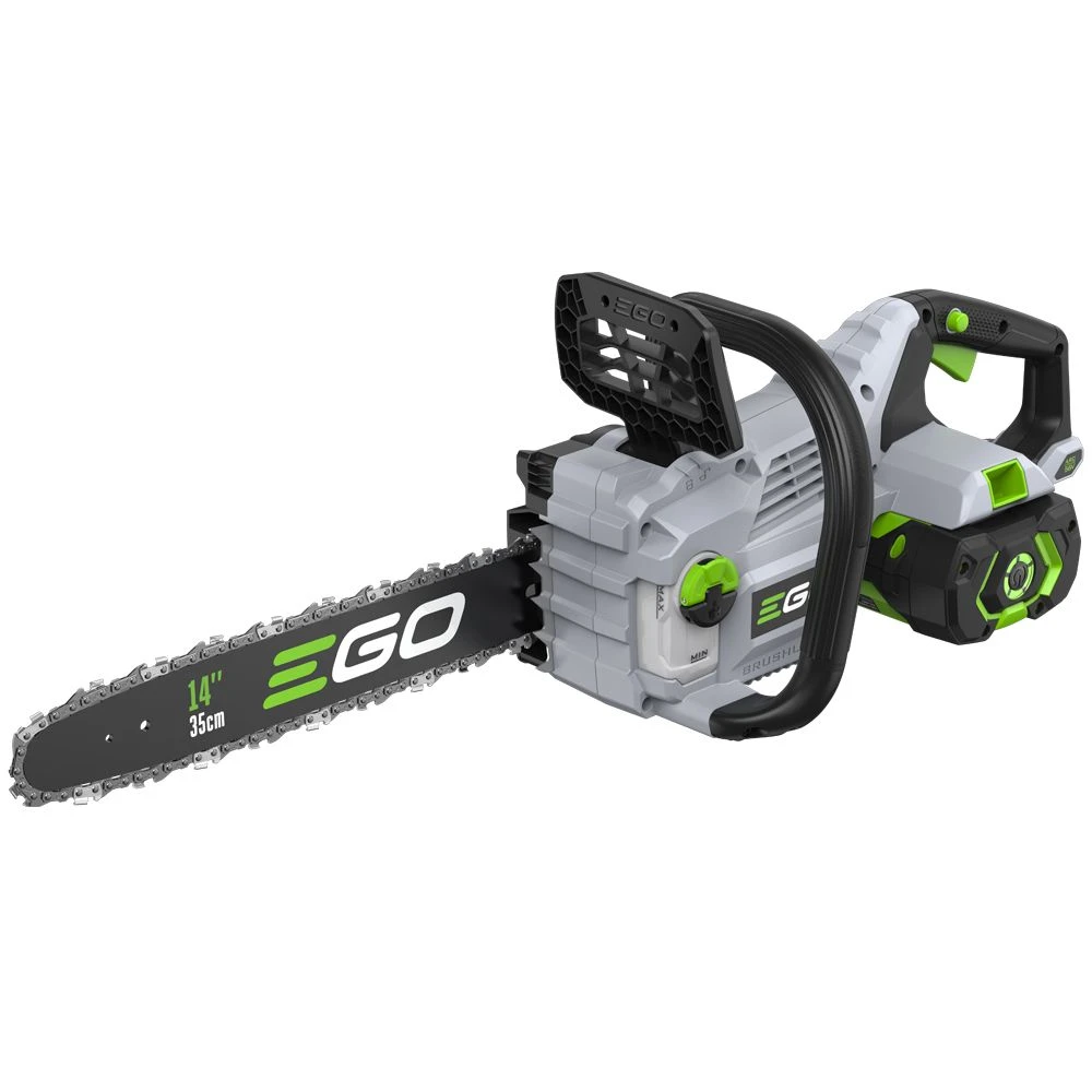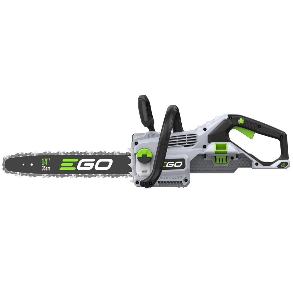 Equipped with a 35cm / 14″ guide bar and chain, the EGO Power+ is one of the most powerful rechargeable chainsaws of its kind, perfect for easily cutting through branches and medium-sized logs. A vastly improved chain speed of 20m/s makes it ideal for making your cutting tasks quick and efficient.