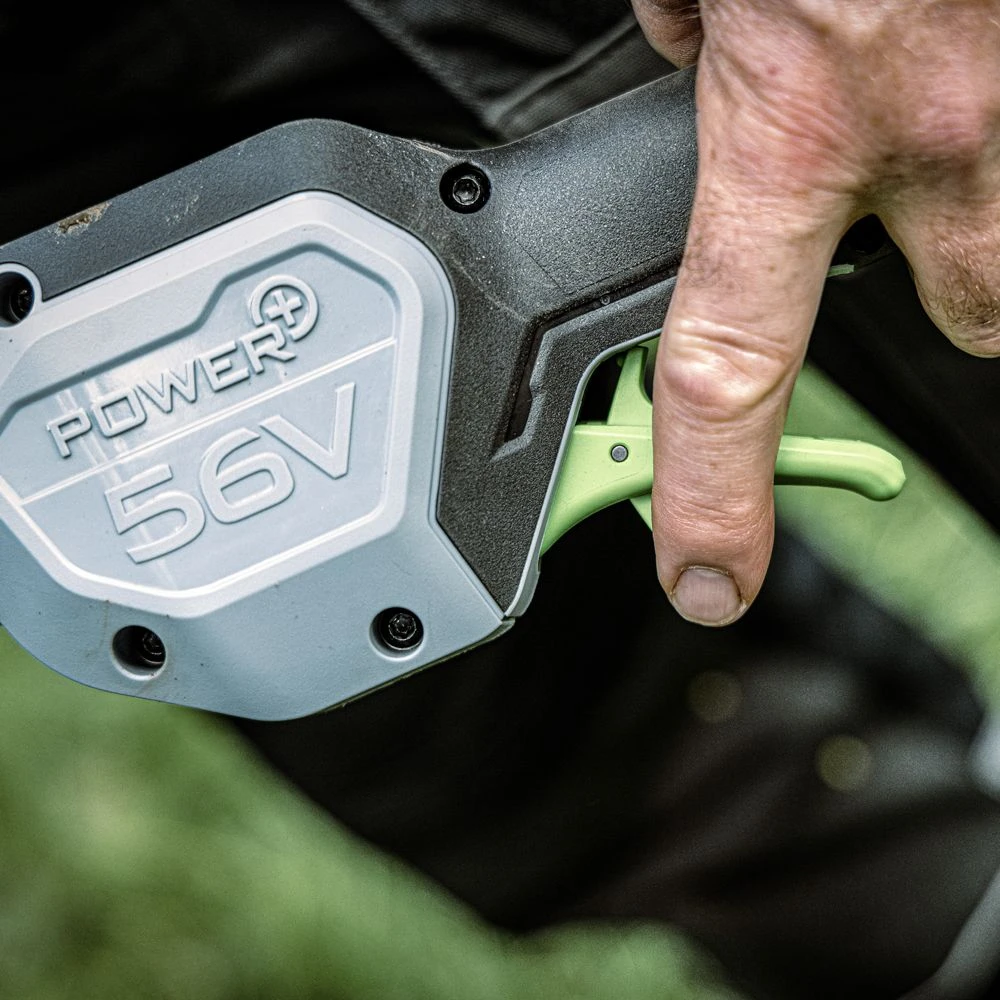 The EGO Power+ HTX5300-PA is equipped with a 53cm-long blade with a 28mm blade gap to deal with those thicker branches. The variable trigger offers precise cutting control with three cutting speeds to enhance the hedge cutter’s suitability for different trimming tasks. The articulating cutting head and gearbox increase versatility for a variety of jobs, rotating through 180 degrees across 10 positions for ultimate control and precision.