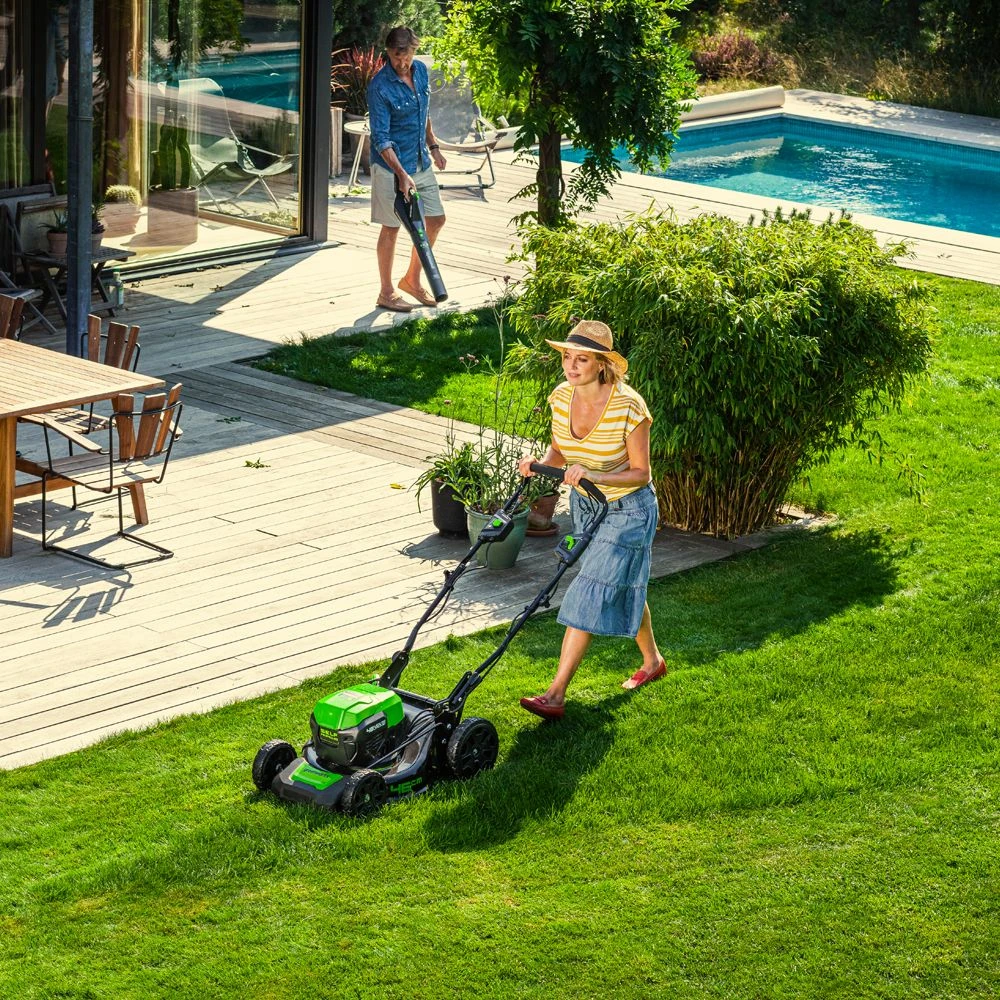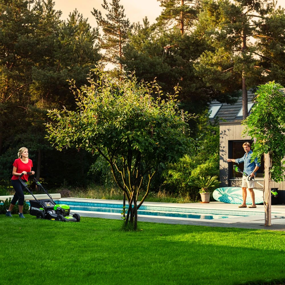 The latest double battery innovation from Greenworks allows two 24V batteries to combine in series to power a 48V motor. The benefits include additional power when mowing while utilising compact 24V batteries which can be used in any of the 24V family of tools, from grass trimmers, hedge trimmers, chainsaws and even power tools.