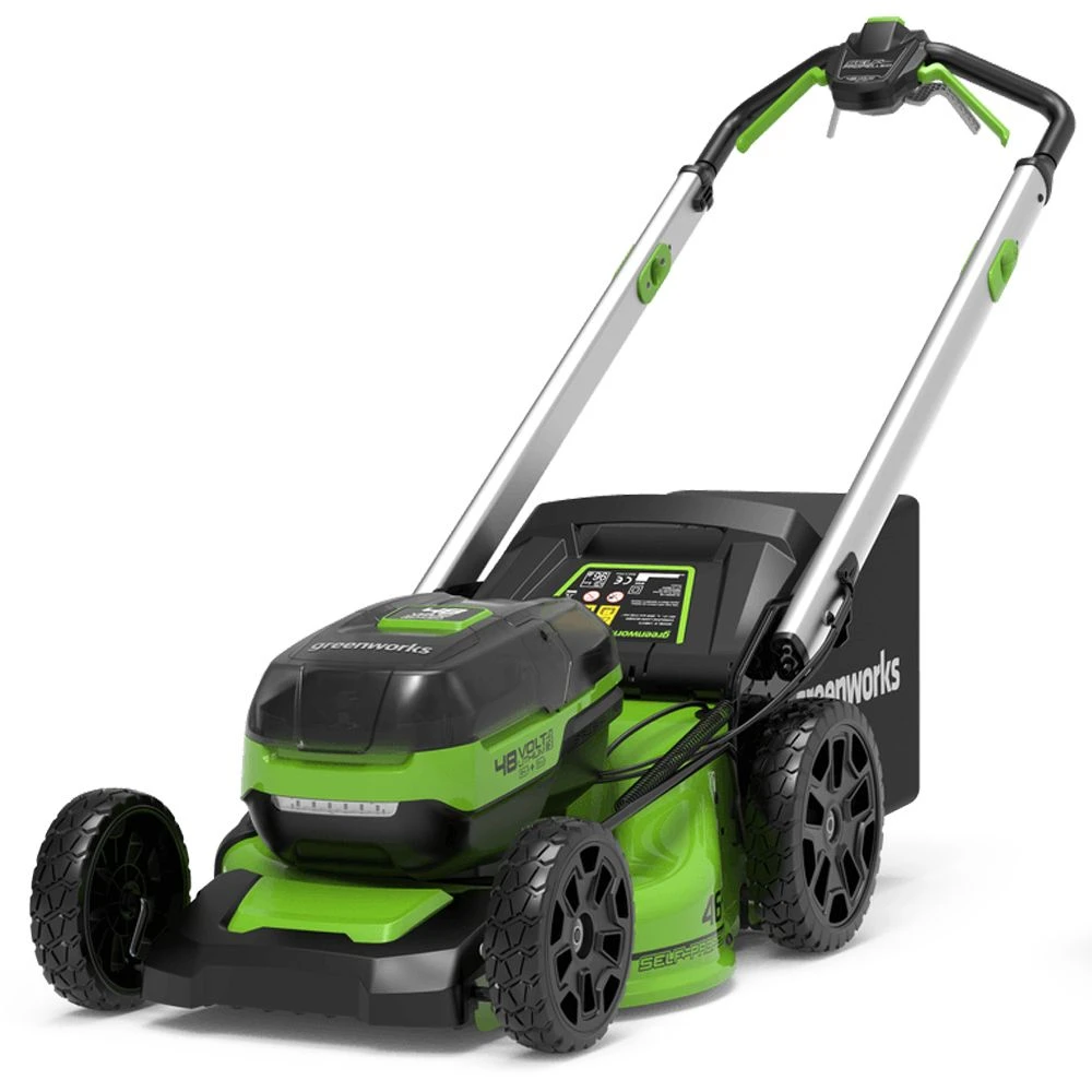 The GreenWorks GD24X2LM46SP4K4K is a feature-packed self-propelled lawn mower kit with a 46cm cutting width for medium to large sized lawns. Powered by an advanced quadruple battery system and part of the 24V family, the battery can be used in any of the other tools available, for total flexibility and convenience.