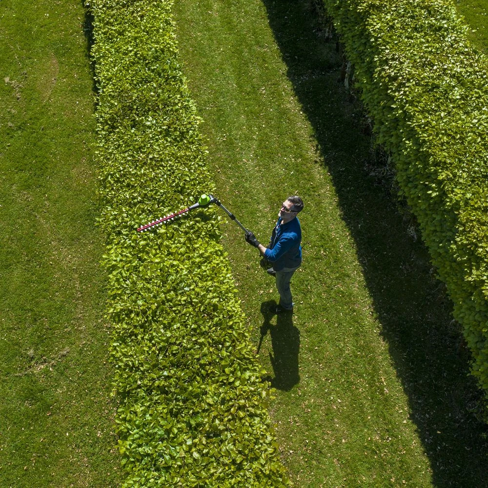 The engine and motor on the GreenWorks Pro GD60PHT51 long reach hedge cutter are positioned to act as a perfect counterbalance to optimise manoeuvrability and ensure accurate results, providing lightweight access to the highest topiary.