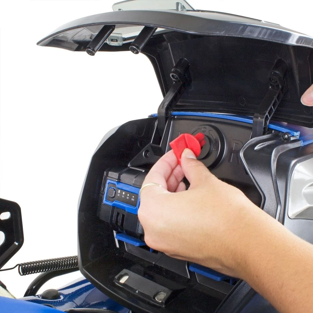 Starting the mower couldn’t be easier, you simply move the safety dial to the left, engage the lock-out button and pull back the Operator Presence Control lever. This easy starting method removes the strain associated with recoil pull start lawn mowers.
