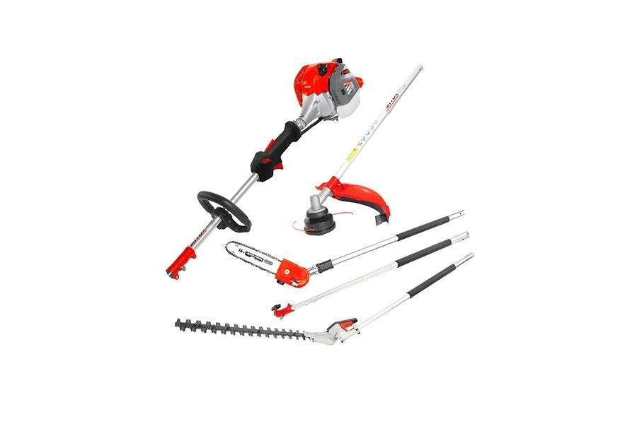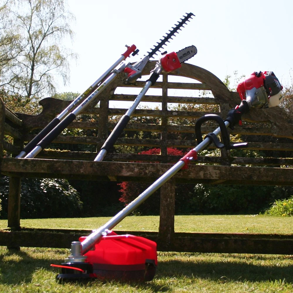 The combination garden tool comprises four tools which give this model its versatility – an auto bump feed grass trimmer and brush cutter, 10″ pole pruner with innovative adjustable head, and a new advanced long reach hedge trimmer attachment, which is itself further improved with a longer 58cm blade with 180 degrees of articulation which can be adjusted with a single hand.