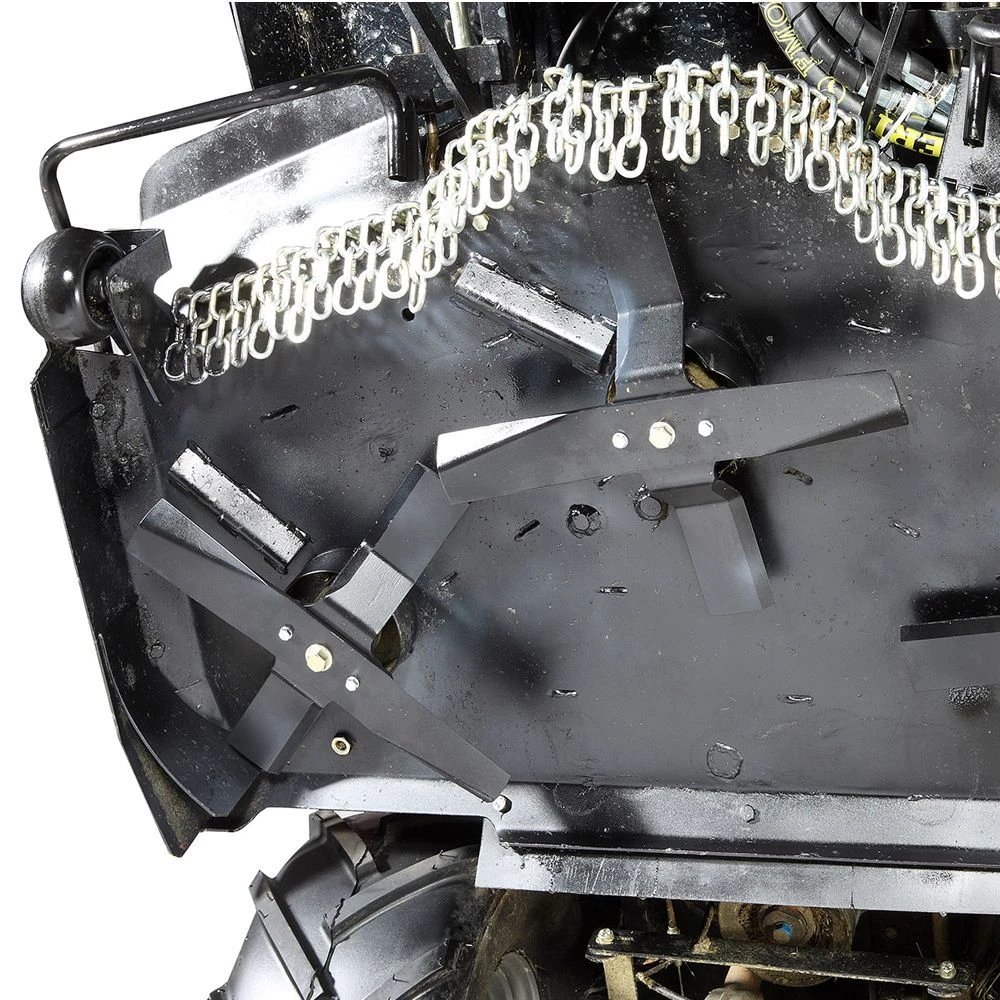 The Oleo-Mac GOLIATH 110 4×4, with its 73cm turning radius, features a wide 110cm cutting deck. The cutting height adjustment is centralised from 40mm to 125mm in four stages. Operator comfort and protection is ensured thanks to the roll bar, side impact guards and seat belts.