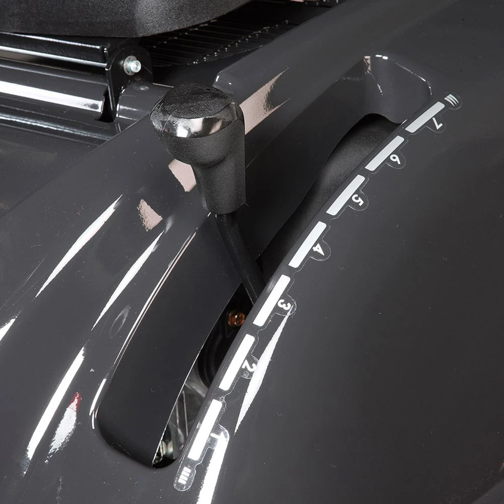 The extremely 45cm tight turning radius assists manoeuvring and cutting, even in very confined areas. Speed is regulated by means of a double pedal which acts directly on the hydrostatic transmission so it is possible to reverse the direction of travel and keep control over speed, even when emptying the bag. To save space over winter, the Oleo-Mac Mistral can even be stored in a vertical position.
