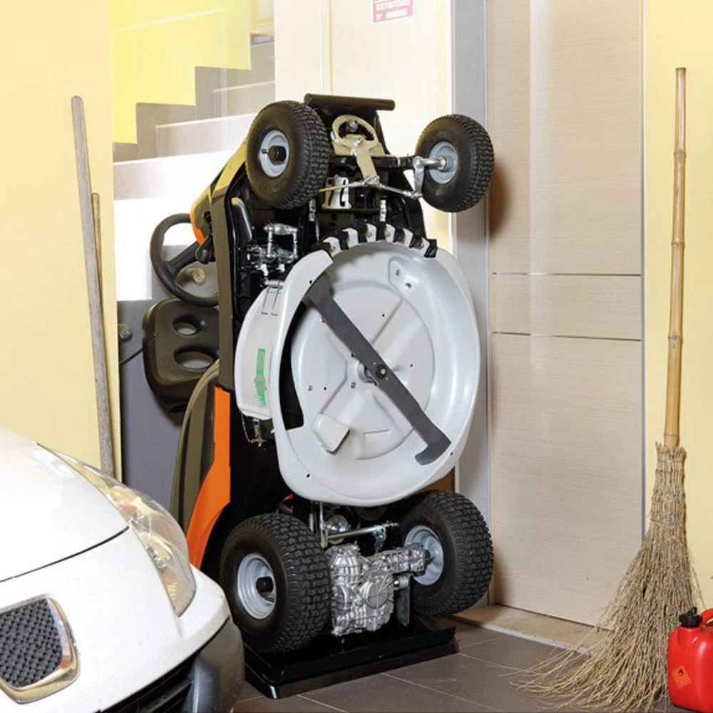 The extremely 45cm tight turning radius assists manoeuvring and cutting, even in very confined areas. Speed is regulated by means of a double pedal which acts directly on the hydrostatic transmission so it is possible to reverse the direction of travel and keep control over speed, even when emptying the bag. To save space over winter, the Oleo-Mac Mistral can even be stored in a vertical position.
