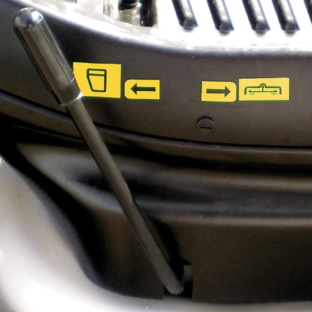 Designed for lawns up to 7,000 square metres in size, full headlights mean you don’t have to stop mowing when the light begins to fade. High levels of comfort are provided by the engine’s anti-vibration system, low noise levels thanks to the fully enclosed bonnet, ergonomic steering wheel and adjustable high-back seat. A deck wash port makes it quick and easy to keep the cutting mechanism clean on the tractor’s undercarriage.