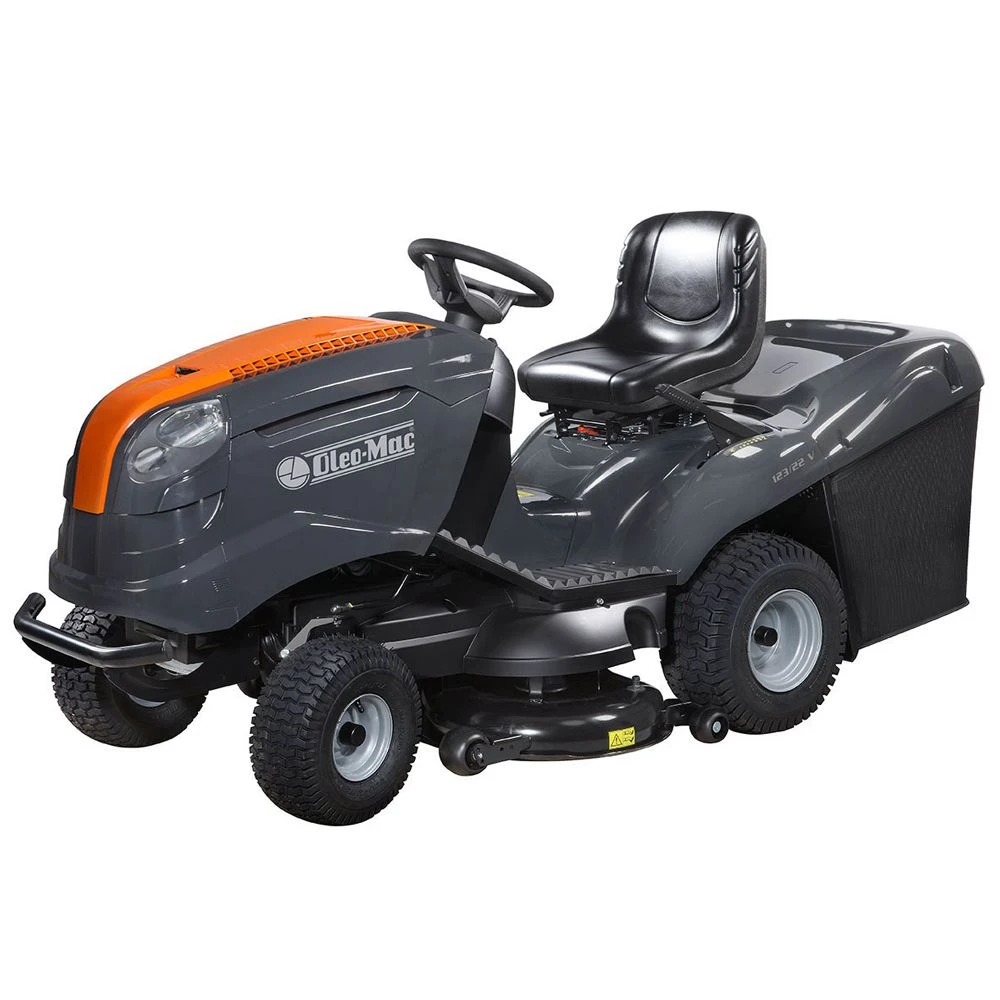 The feature-packed Oleo-Mac OM 123/22 V lawn tractor also boasts a comfortable, high back adjustable seat, headlights to enable you to work in poor light conditions, a steel front bumper for high strength and resistance in the case of accidental impact, wide-profile pneumatic tyres which provide maximum traction whilst being kind to your lawn, plus a deck wash system for quick and easy cleaning of the cutting mechanism.
