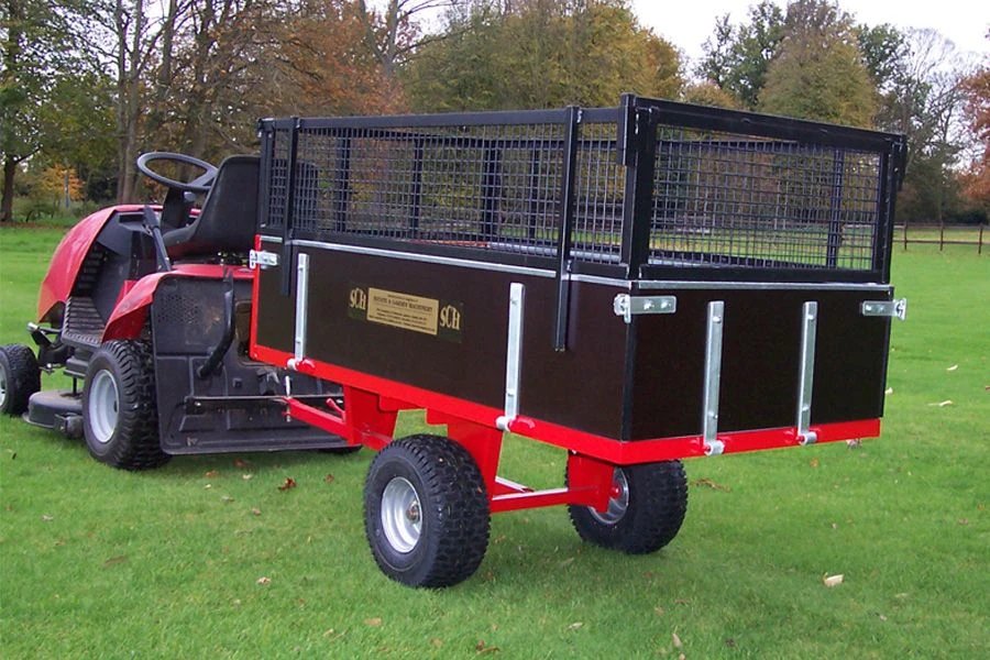 The trailer is fitted with wide profile pneumatic tyre wheels complete with bearings. These have a significant surface contact area, making the trailer extremely stable under load. The wide wheels also minimise track marks on the grass.