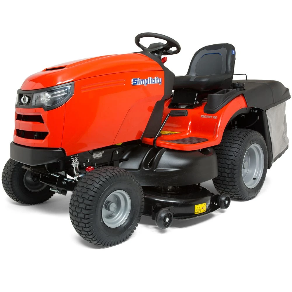 The Simplicity Regent RD SRD 360 rear collect tractor has a 42″/107 cm, twin-bladed, stamped steel cutting deck and a large 350-litre collector, which features a large comfortable lever enabling the user to empty the grass without leaving the seat.