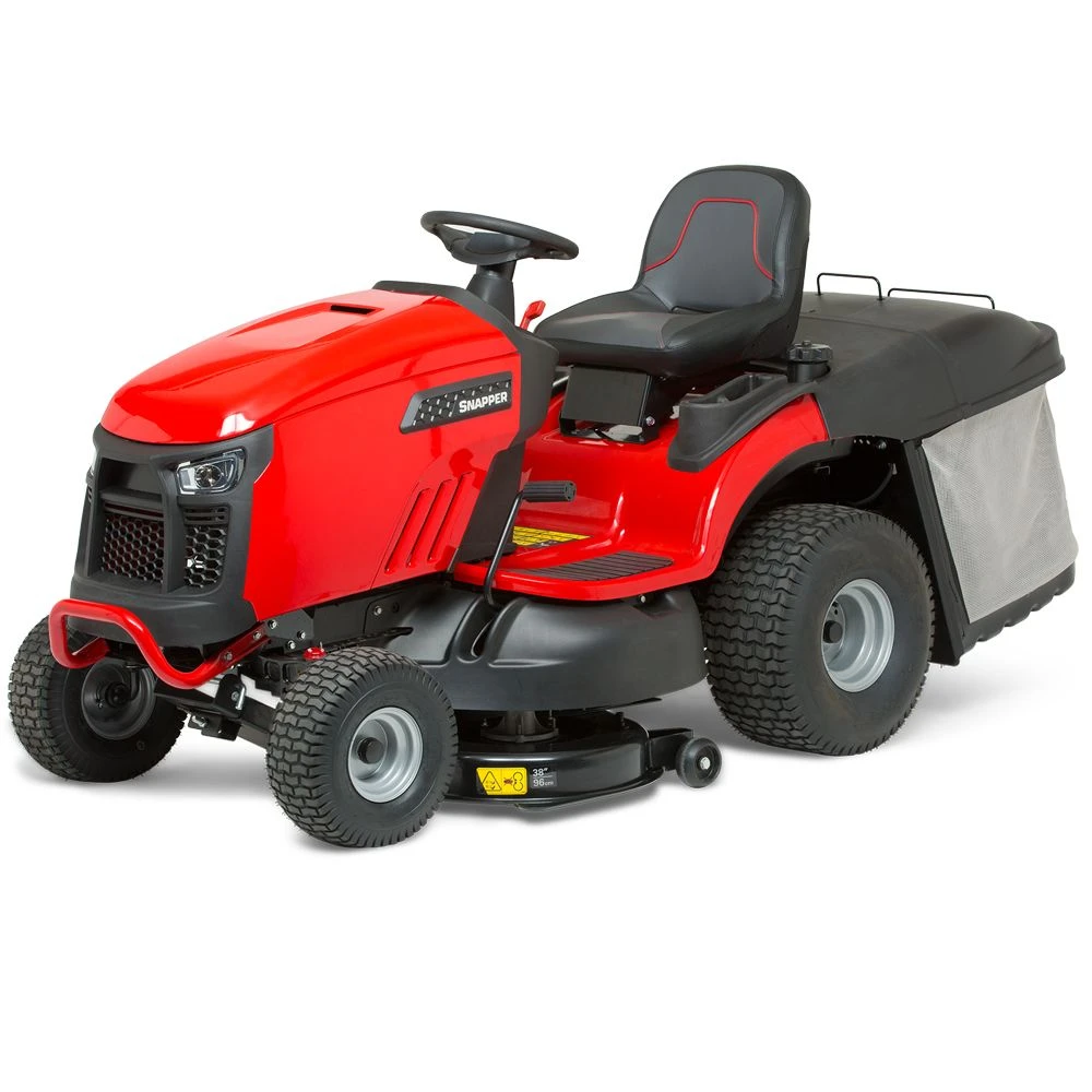 The Snapper RPX210 rear collect lawn tractor has a 38″/96cm twin-bladed pressed steel cutting deck and a large 350 litre collector which features a large, comfortable lever enabling the user to empty the grass without leaving the seat.