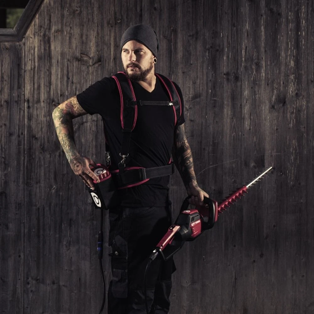 The hedge cutter can only be used in conjunction with the BB 40 battery belt, which must be purchased separately (see Related Products below), enabling you to connect to a battery and carry a spare battery without adding to the weight of this light 3.6kg hedge trimmer.